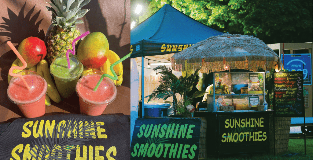 Sunshine Smoothies is a small independent business for over 25 years. They offer All Natural Non Dairy Smoothie using all fresh produce.
